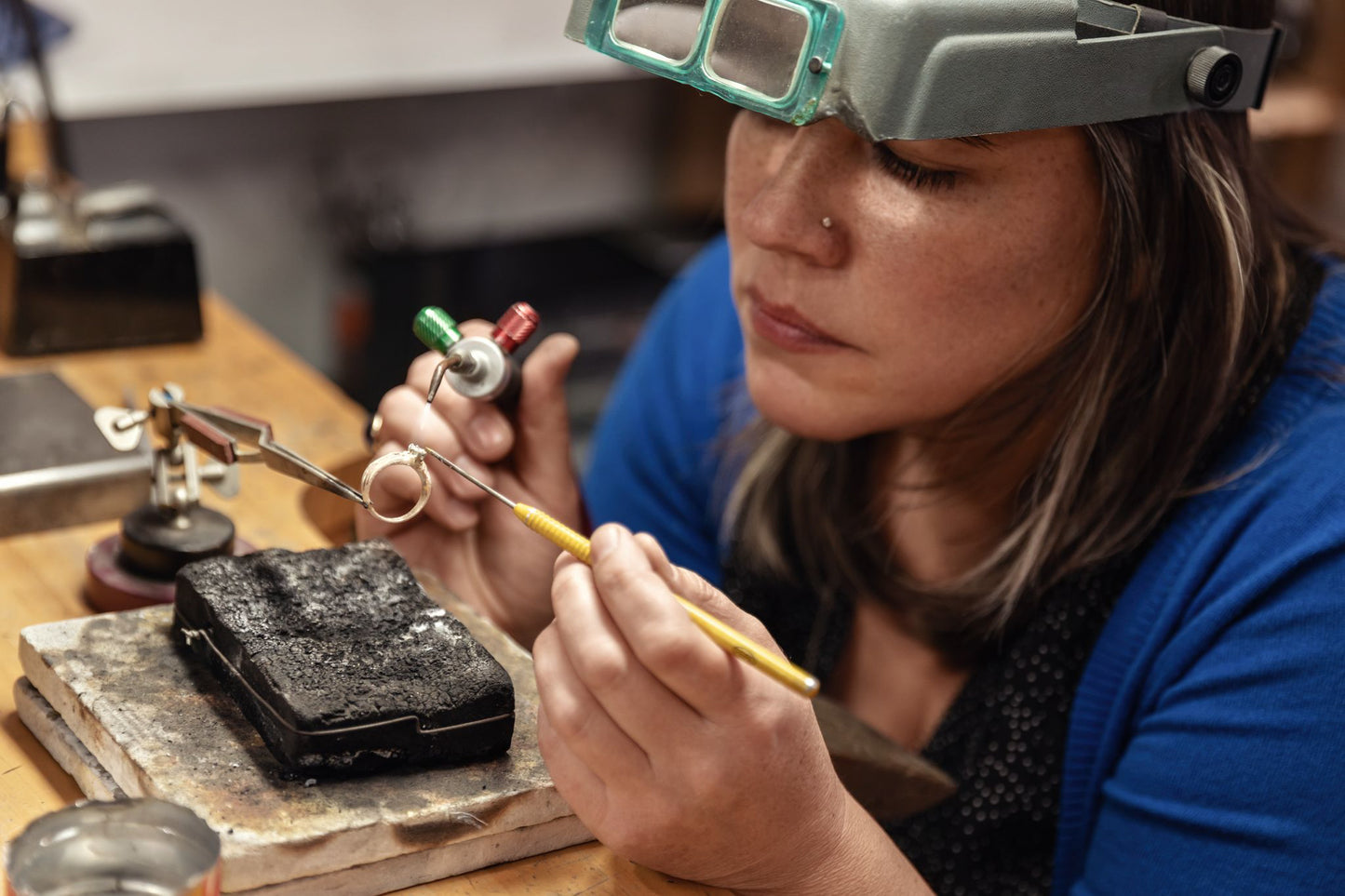 At M&M Jewelry Studio, we invite you to come experience the personal touch of handcrafted jewelry in a low-key and friendly setting. We provide more than just the finished product – we offer you the chance to work directly with our jewelers to create something unique, special, and truly yours. Our studio is not like a traditional jewelry store; it’s a workspace where our team of experienced artisans works directly with you to craft or repair your jewelry.